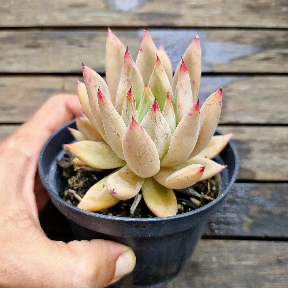 Echeveria agavoides híbrida rosa pontas vermelhas (única- vaso11)